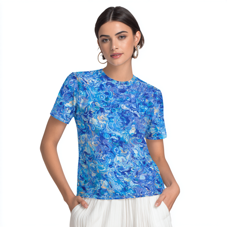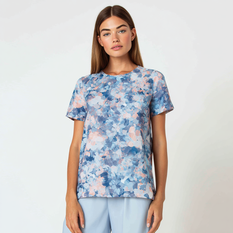 Add an effortless touch to your wardrobe with this stylish Blush Mark blue short sleeve top, crafted from soft cotton. Its lightweight and breathable design ensures comfort without compromising on style, making it a perfect choice for casual outings or layering. Pair it with your favorite jeans or skirt for a timeless, everyday look.
